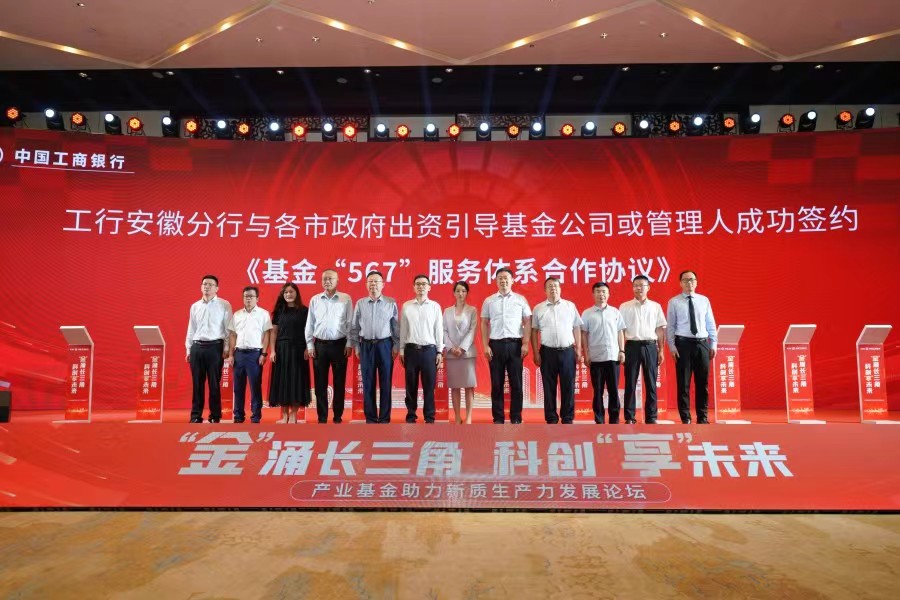 此外,在各位來賓的共同見證下,工行安徽省分行分別與省級政府出資引導基金公司或管理人、各市政府出資引導基金公司或管理人簽署了《基金“567”服務體系合作協議》,生動彰顯了“567”基金服務模式的市場認可度和產業基金引導新質生產力發展的向“新”力。