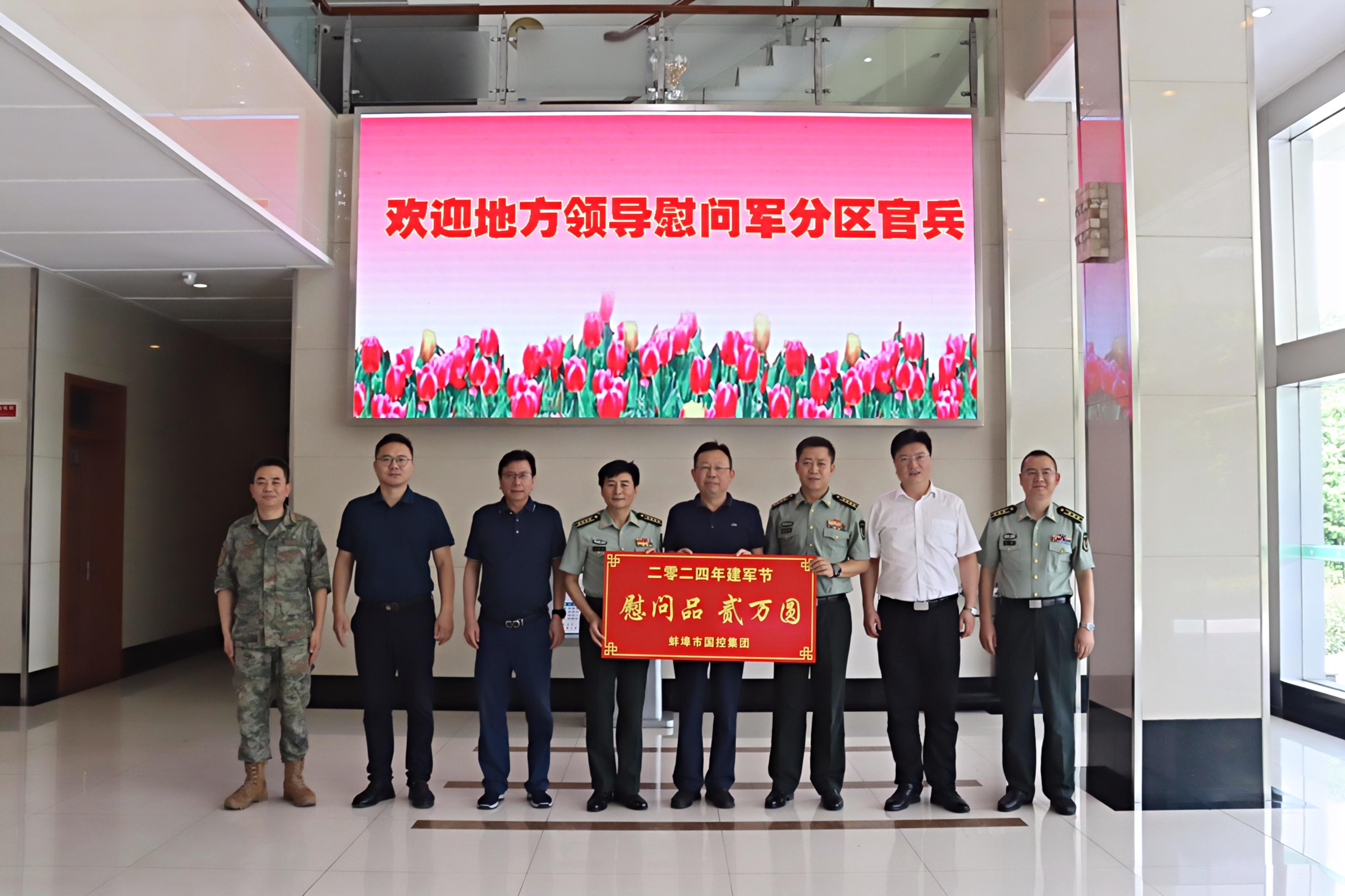 會(huì)后,軍地雙方組織了慰問(wèn)品交接儀式,市國(guó)控集團(tuán)將價(jià)值2萬(wàn)元的慰問(wèn)品呈交蚌埠軍分區(qū)并合影留念。