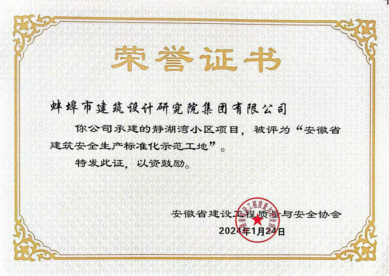 古原名邸、靜湖灣和聆湖灣東苑Epc項目榮獲“安徽省建筑安全生產標準化示范工地”稱號
