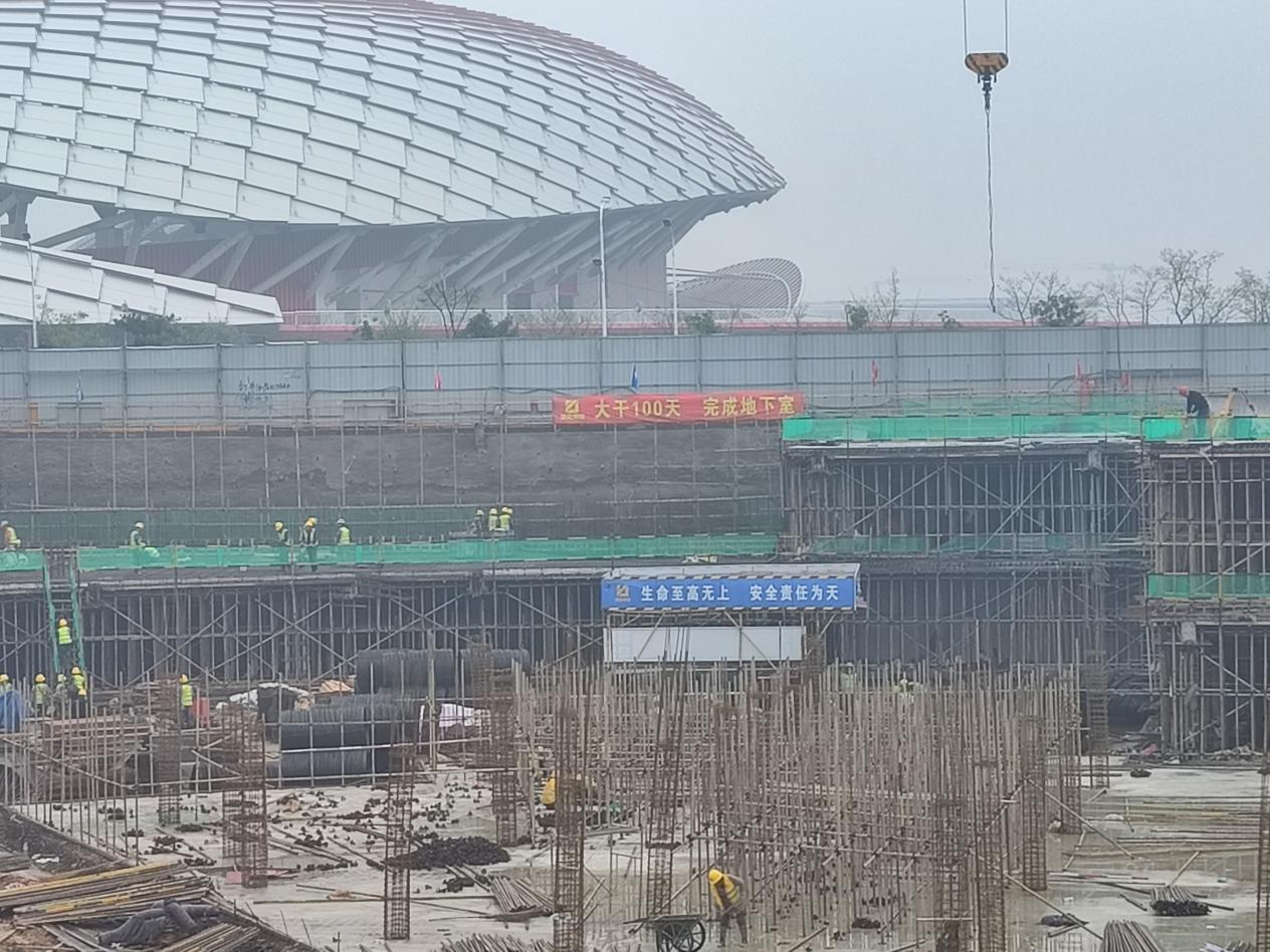 該項目年前因環保督查、大氣污染治理、雨雪天氣和馬拉松活動影響等原因,導致施工現場多次停工,土方外運困難,造成工程進度嚴重滯后。年后,城開集團組織召開3月份復工復產工作會議,為了把耽誤的時間搶回來,要求掀起大干高潮——“大干一百天,完成地下室”,營造大干的氛圍。