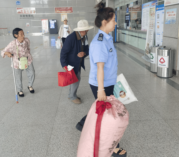 炎夏的一天,綜合客運站售票廳內兩位腿腳不便、不停翻找行李的老夫婦引起了站務一班班長陸娜的注意,詢問后得知:外出探親準備返程時發現身份證和錢包都找不到了。陸娜立刻購買了車票,幫著把行李拿到候車室候車,耐心安撫焦慮情緒,直至聯系上家人說明情況,確定好接站時間才放下心來。當老人家屬打來電話說已安全到家,并想來表示感謝時,陸娜婉言謝絕:“這是我們應該做的。”